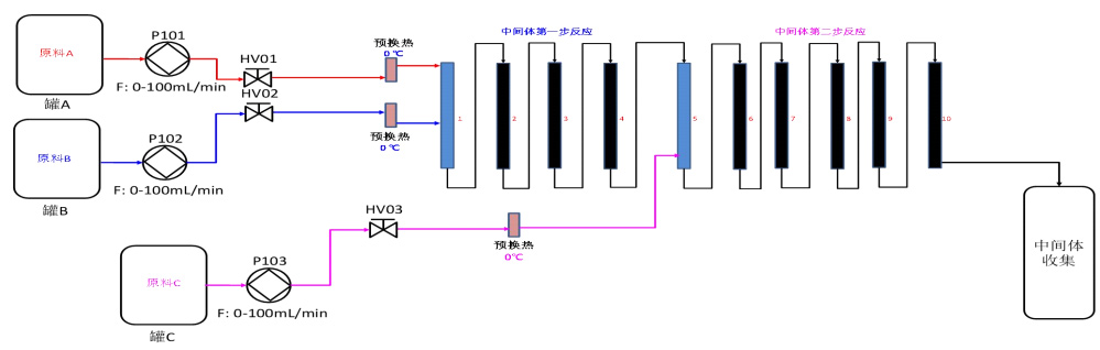| 現(xiàn)有工藝 | ● 反應(yīng)放熱大、存在安全風(fēng)險(xiǎn) ● 中間體濃度提高困難、生產(chǎn)效率低 ● 產(chǎn)能擴(kuò)展困難 |